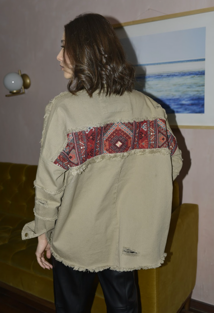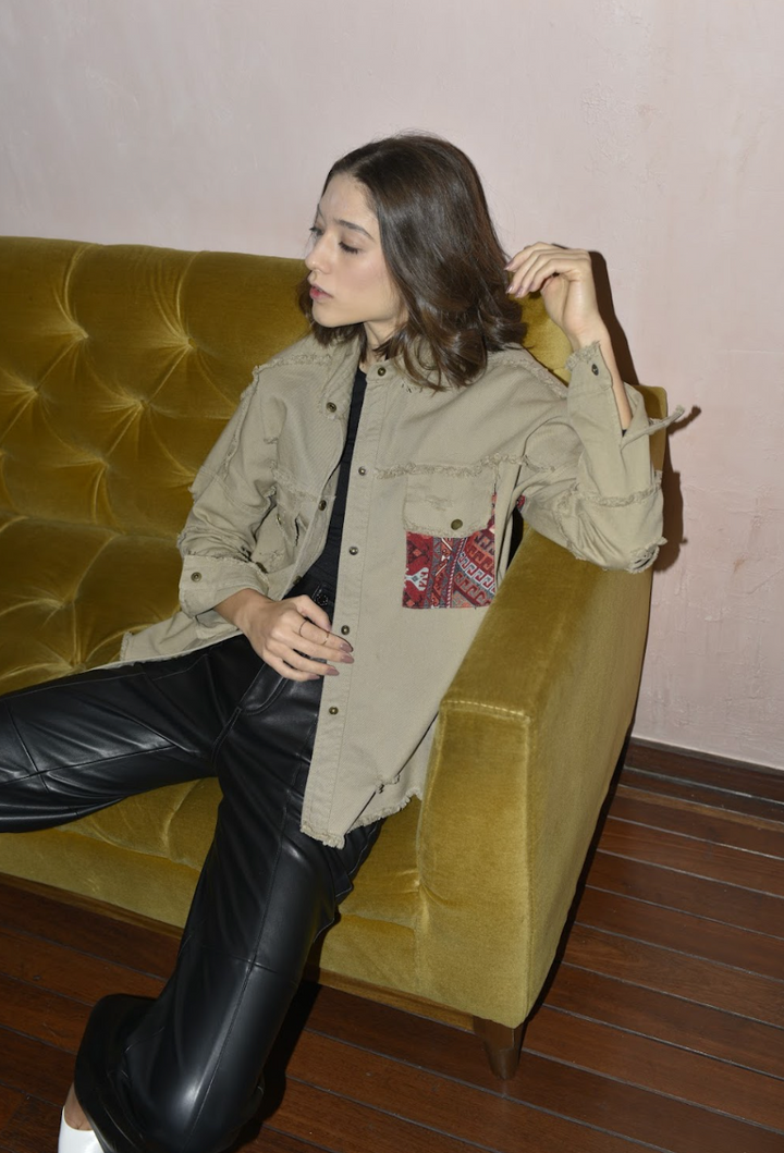 Embrace effortless style with this oversized shacket in cotton drill, where laid-back meets luxe. This standout piece features distinctive loom details on the back and pocket, enriched with fringe accents that add a touch of bohemian flair. The relaxed fit offers a contemporary twist on classic layering, making it a versatile addition to any wardrobe. Perfect for transitioning through seasons, this shacket effortlessly blends comfort with elevated design, ensuring you make a chic statement wherever you go.
